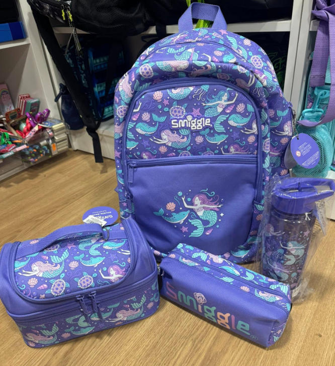 Backpack - Padded adjustable shoulder straps; 2 zipped compartments; main compartment with double zips; Mesh bottle pocket; Carry handle; Internal name label; Internal compartment fits A4 notebook; H 37.5cm x W 26cm x D 11cm